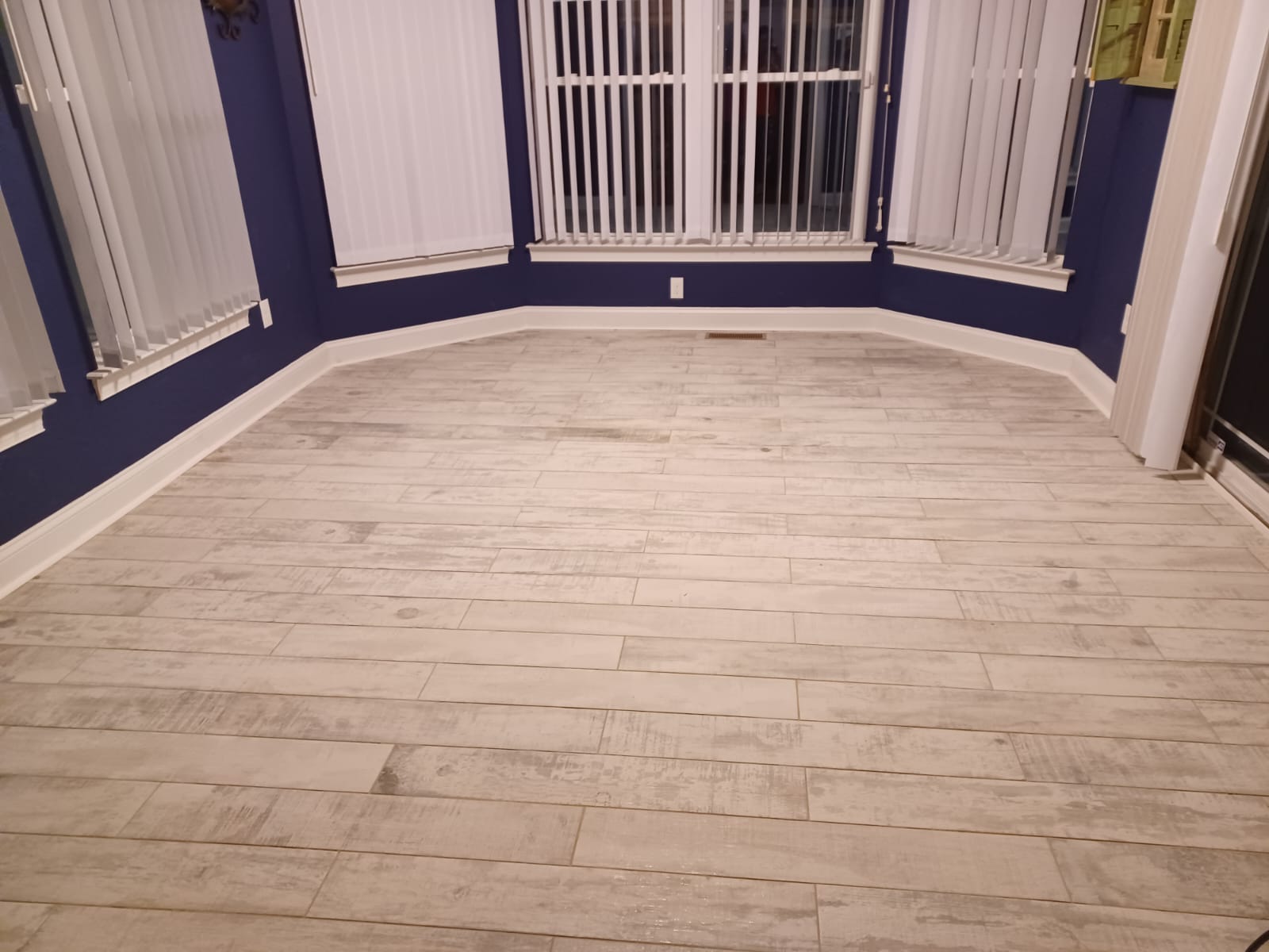 The homeowner contacted us in need of replacing a floor in their house with a more modern and stylish tile that looks like wood.  This project came with many unique angles and required a great attention to detail.